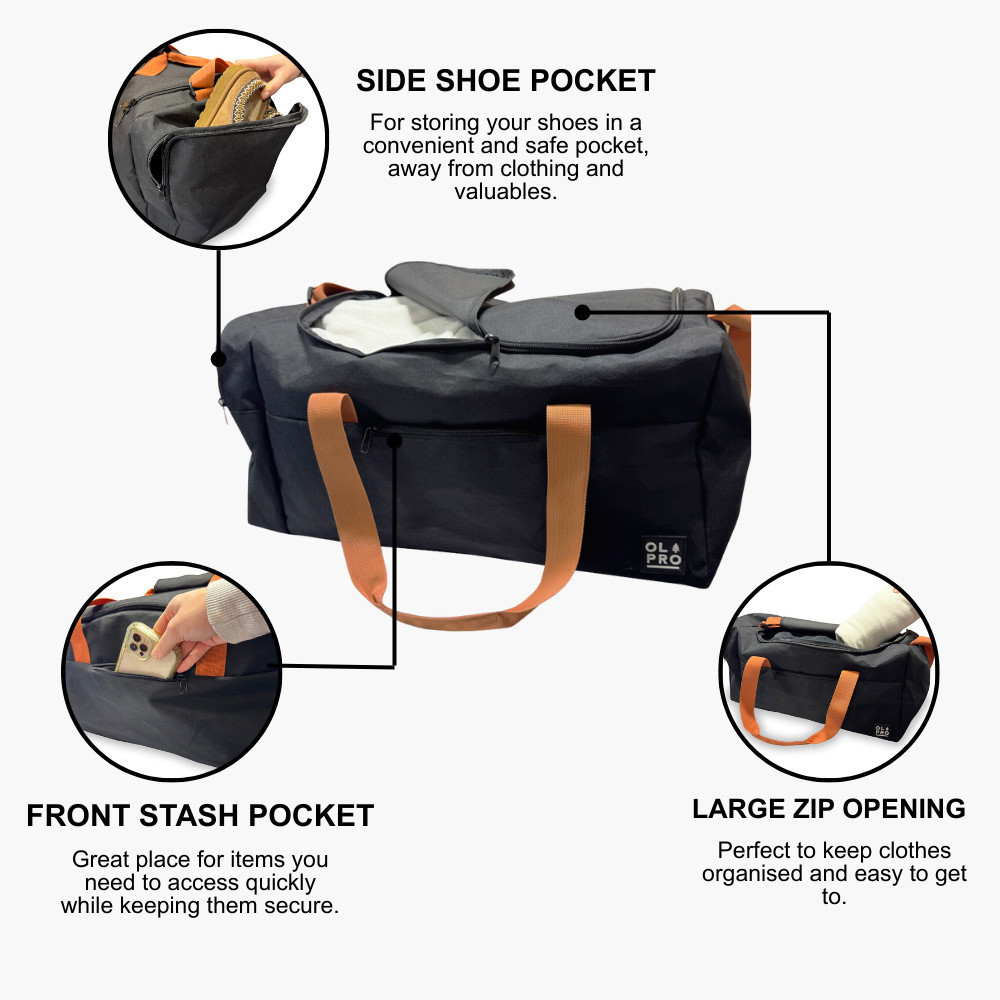 The OLPRO 40L Holdall is a practical carry bag that’s made for weekends away, gym sessions, sports training and everyday life. With a generous 40-litre capacity, it gives you plenty of room for clothing, trainers, towels and kit — without being bulky to carry.