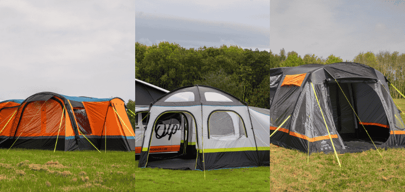 A: The inflatable models, Cocoon Breeze V2 and Loopo Breeze V2, can typically be pitched in around 10–15 minutes using OLPRO’s Breeze® inflatable technology, while the Hive, which uses fibreglass and steel poles, takes slightly longer.