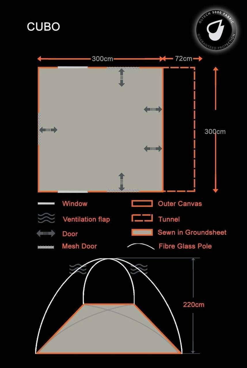 Pitched with two sets of fibreglass poles, the Cubo V2 represents a classic poled geodesic design that effortlessly complements any campervan while offering a versatile living space that caters to your needs. Use it as a dining area, a lounge, or even a sheltered workspace—the possibilities are endless.