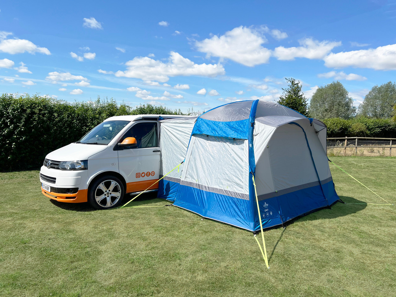 The Uno Breeze® Drive away Campervan Awning is the smallest awning by OLPRO and is the perfect size to store bikes, tables and chairs or for space for pets. It has a sewn-in ground sheet so it can be used as a sleeping or living area too. It has two large windows on either side of the awning and a large door on the front with a canopy to add a little more protection from wet weather.