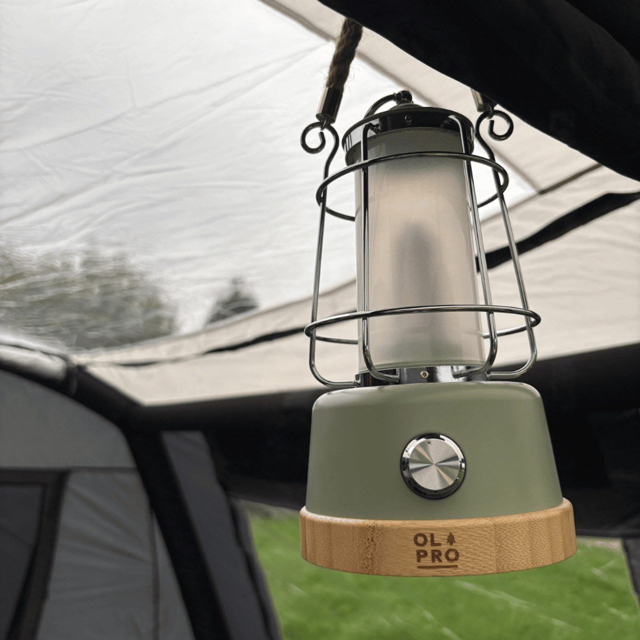 The OLPRO Retro Dimmable Lantern blends timeless design with smart, sustainable technology. Whether you’re lighting up your campsite, campervan, garden, or home, its adjustable light modes and natural materials create the perfect glow for any setting. Compact, reliable, and rechargeable — it’s the perfect companion for your next adventure.