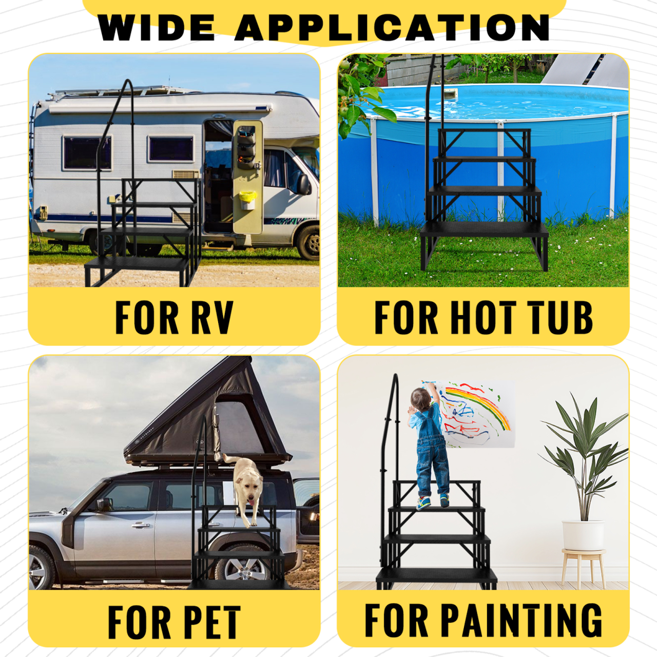 3 Step Ladder for Campervan/Caravan/ RV/ Hot Tub/ Pool with Handrail